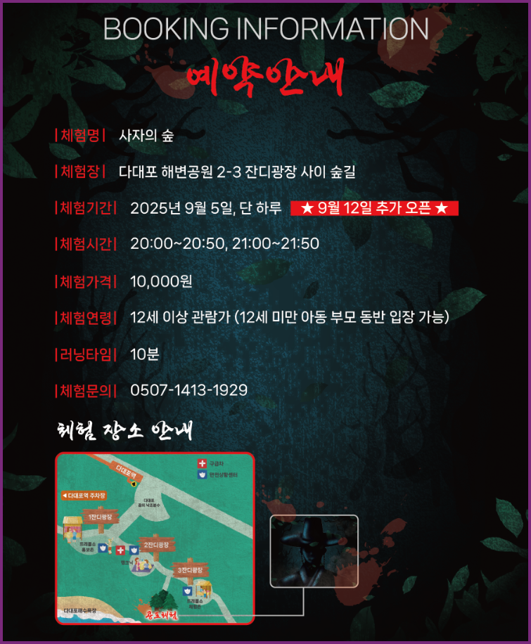 - 행사명: 사자의 숲 (2025 다대포 호러체험)