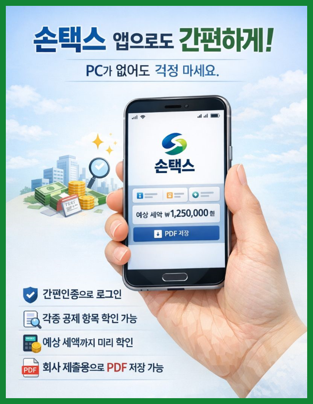 손택스 앱만 있으면 PC 없이도 대부분의 공제자료를 조회 + PDF 저장 할 수 있습니다.