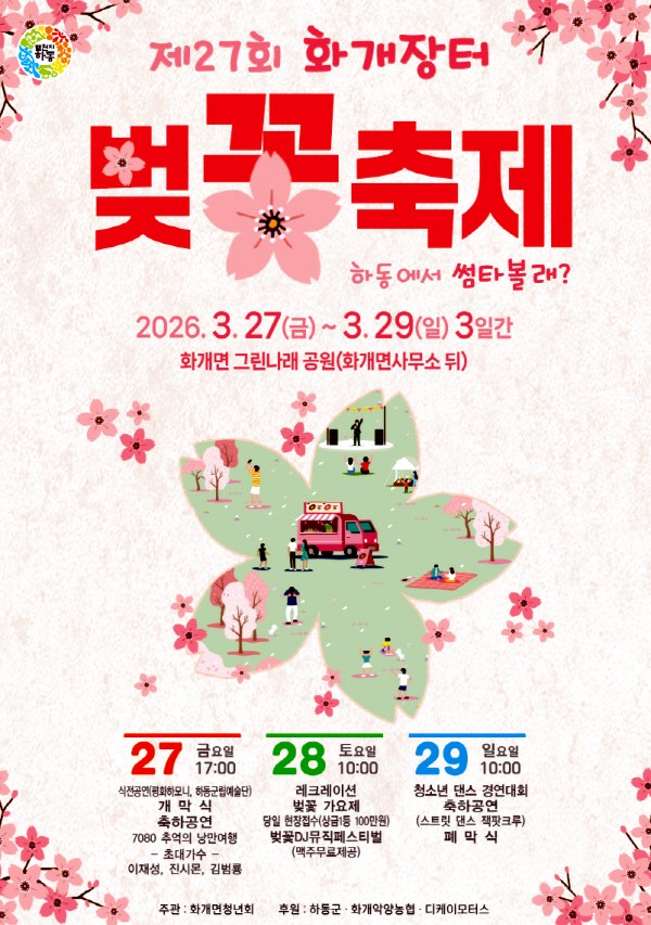 특히 제27회 화개장터 벚꽃축제는 꽃구경만 하는 축제가 아니라 지역 먹거리, 공연, 특산물, 봄 여행 감성이 모두 모이는 행사라는 점에서 만족도가 높습니다.