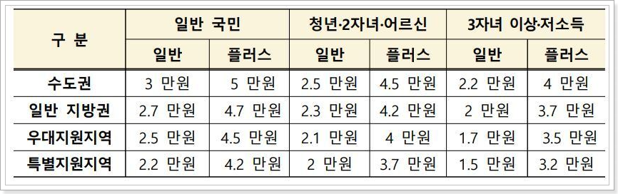 | 플러스형 | 5만 원 | 2만 5천 원 |